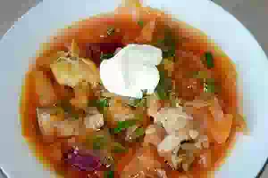 Если используется сильно кислая капуста, то её нужно промыть горячей водой. Малосольную или свежую капусту сразу положить в борщ. Довести все опять до кипения и варить борщ еще 10 минут после закипания.