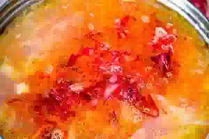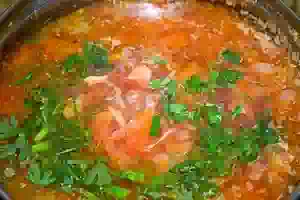 6. Выложить заправку в борщ с уткой. Проварить его еще 5-6 минут. Снять пробу на соль и приправить борщ по вкусу.