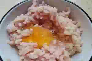 2. Приготовить фарш для куриных фрикаделек. Пропустить через мясорубку куриное филе и четвертинку картофеля. Добавить яйцо.