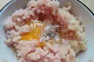 3. Приправить солью и молотым черным перцем. Хорошо вымесить фарш.