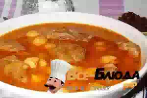1. Нут предварительно замочите в холодной воде на ночь. Затем воду слейте. Нут промойте и варите на протяжении 50 минут. За это время помойте мясо. Нарежьте его небольшими кусками. Разогрейте на сковородке масло, слегка обжарьте в нем мясо. Очистите лук, мелко порежьте его и соедините с мясом.