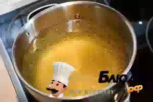 4. Переложить овощную обжарку в кастрюлю с бульоном, довести до кипения и варить на слабом огне 5 минут, снимая пенку.