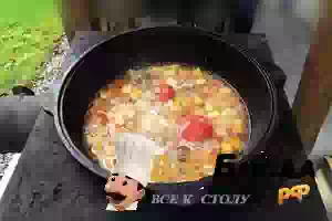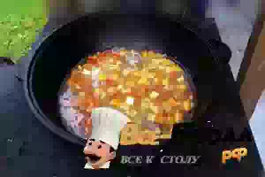 1. В казан наливаем холодной воды, закладываем все мясные косточки и доводим до кипения.