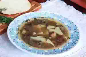 Сливочный суп с кроликом и сушеными белыми грибами