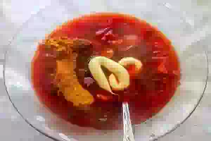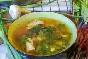 Суп из бараньих ребрышек со свекольной ботвой и чесночными стрелками