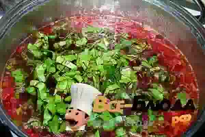 7. Свекольные листья нашинковать и добавить в суп. Дать супу покипеть на небольшом огне ещё 10 минут, выключить, добавив «под крышку» мелко нарезанную зелень. Абсолютно любую, какую душа попросит. И чем больше, тем лучше. Дать минут пять настояться. Подавать ботвинник горячим, со сметаной и, по желанию, с отварным яйцом.