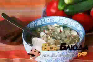 4. Залить все холодным квасом и приправить сметаной. Окрошка с колбасой готова.