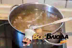 6. Влить в кастрюлю немного бульона, прикрыть крышкой и варить на слабом огне примерно 5 минут.