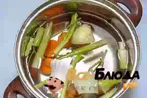 1. Овощной бульон обычно готовится заранее. Можно сварить побольше, отделить необходимый для этого рецепта объем бульона, а остальное хранить в морозилке до следующего случая, когда соберетесь готовить суп. Ну, не готовить же каждый раз по два стакана бульона для двух порций супа.