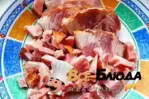 копченое мясо с прослойкой сала - около 100г