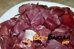 1. Мясо хорошо промыть, нарезать на кусочки размером примерно 3 см.