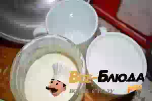 3. В другой миске отмерить две ложки муки и добавить немного белой смеси, размешать тщательно и вылить оставшуюся сметанную жидкость.