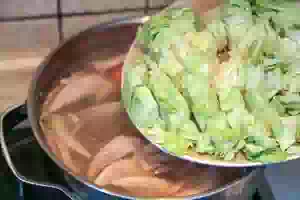 8. Переложить в кастрюлю капусту и варить на небольшом огне примерно 5 минут.
