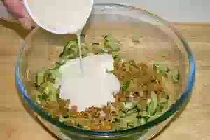 1. Огурцы порезать мелкими кубиками или натереть на крупной терке.