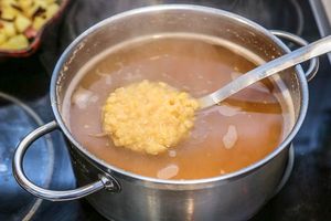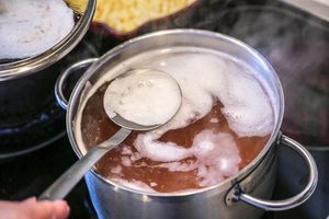 4. Дать бульону повторно закипеть, снять пену, после чего уменьшить огонь и варить примерно 30 минут.