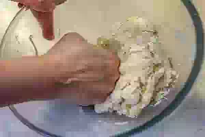 3. вымешивать, добавляя по чуть-чуть воду. Оно должно получится эластичным и довольно плотным.
