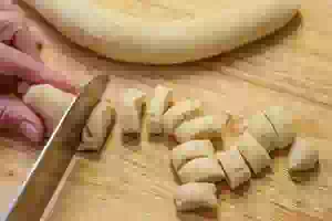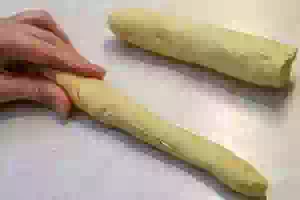 4. Разделить тесто на 4 части и из каждой скатать валик толщиной около 3 см.