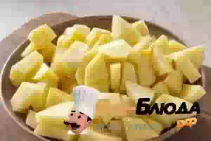 2. Добавляем в кастрюлю воду, доводим до кипения, снимаем пену и добавляем картофель. Варим на среднем огне до готовности картофеля, приблизительно 15-20 минут. Добавляем лавровый лист и соль.
