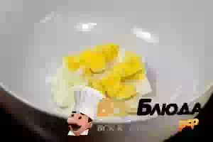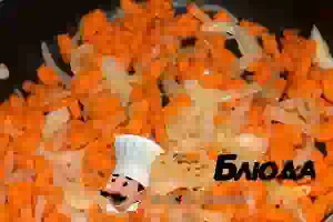 1. Лук мелко режем, морковь режем маленькими брусочками, выкладываем разогретую кастрюлю с маслом и обжариваем до прозрачности.