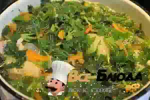 2. Варим суп по привычному вам рецепту. Сначала варим мясо до готовности, добавляем порезанную на брусочки картошку, поджарочку из лука и морковки. Солим, перчим по вкусу.