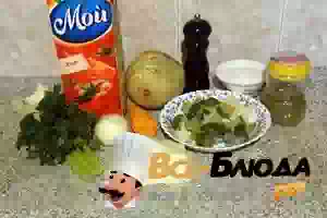 5. Добавить томатный сок, соль, чёрный перец, и приправу хмели-сунели. Хорошо перемешать.