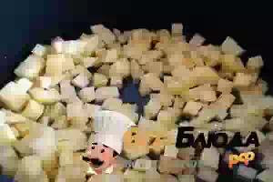 2. Разогреваем кастрюлю с растительным маслом, добавляем картофель и слегка обжариваем.