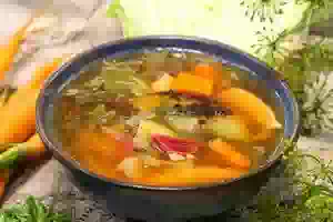 Летние щи на курином бульоне со свекольной ботвой Ингредиенты: зелень (лук зеленый, укроп) – по вкусу свекла молодая (с ботвой) - 3 шт. курица (на косточке) – 500г капуста молодая - 300г
