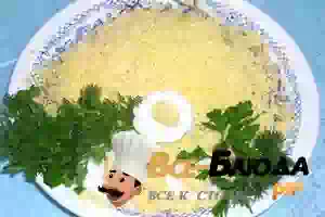 5. Выкладываем в салатник, и украшаем желтками протёртыми на мелкой тёрке.