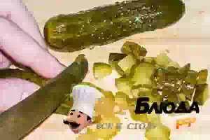 4. Огурцы, если это требуется, очистить от толстой кожицы и порезать кубиками. Лук мелко порезать.