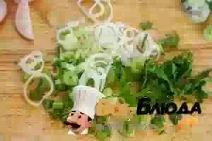 2. Свежую зелень (зеленый лук, петрушку, укроп) мелко порубить.