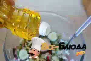 6. Влить немного ароматного растительного масла, еще раз аккуратно перемешать и овощной салат с козьим сыром готов.