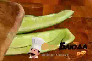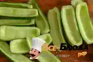 2. По одной «лодочке» кладём на разделочную доску, накрываем другой доской и достаточно сильно, так чтобы огурец треснул и расплющился, бьём по верхней доске. В трещины проникнет маринад, и огурцы будут более равномерно и быстро промаринованы.