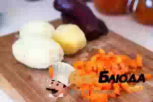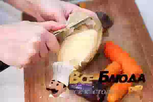 1. Мытую, нечищеную свеклу обернуть фольгой и запечь до готовности в прогретой до 200С духовке. Сварить картофель в мундире и морковь. Дать овощам остыть и очистить.