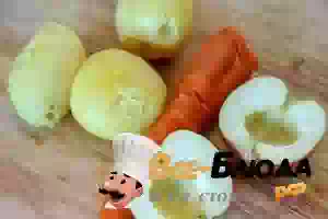 5. нарезанные кубиками картофель и морковь, измельченный репчатый лук. Его можно заменить сладким салатным или молодым зеленым луком.