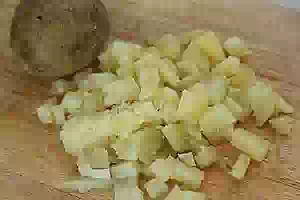 2. Картофель порезать маленькими кубиками.