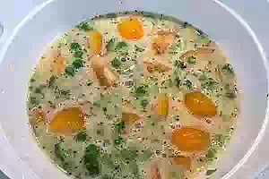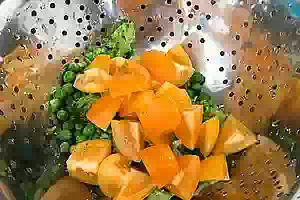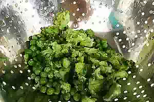 1. Разделите брокколи на отдельные соцветия, добавьте мороженый зеленый горошек.