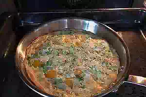 3. Посолите яйца, всыпьте порошок мускатного ореха, базилик, взбейте со сливками. Перелейте яичную смесь в овощи. Измельчите сыр пармезан на терке. Добавьте к блюду, смешайте.