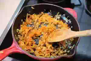 3. Мелко нарезать лук, морковь натереть на крупной терке.