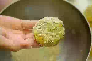 9. На плоское блюдо насыпать 1-2 ст.л. панировочных сухарей.Каждую обвалять в панировочных сухарях. Жарить картофельные котлеты с киноа на небольшом огне в хорошо разогретом растительном масле с двух сторон, пока не появится хрустящая румяная корочка. Готовые котлеты из киноа с картофелем подавать горячими как основное блюдо или гарнир.
