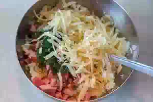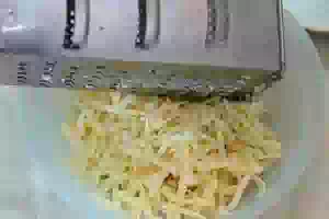 7. Смешать сыр с картофелем. Если картофельная масса для котлет получилась влажноватой, то можно загустить её мукой или панировочными сухарями.