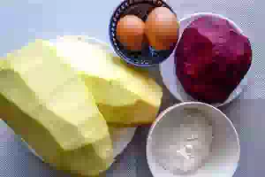 1. Очищаем кабачок и свеклу от кожуры. Удаляем из кабачка семена, если они есть.