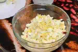 5. Отправить чесночный майонез в салатник. Хорошо перемешать.