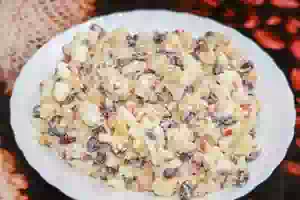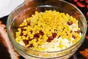 Салат с крабовыми палочками, кукурузой, фасолью и сухариками