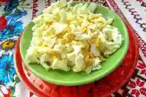 4. Все ингредиенты для салата «Подсолнух» смешиваем, добавляем консервированную кукурузу и заправляем по вкусу майонезом.