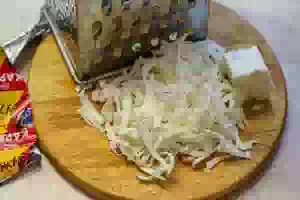 3. Плавленный сыр минут на 10 убрать в морозилку, чтобы его проще было натирать. Затем измельчить на крупной терке.
