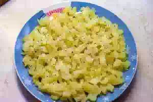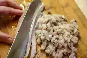 4. Филе соленой сельди нарезать маленькими кубиками.