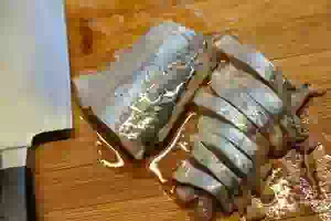2. Филе солёной сельди нарезать кусочками шириной около 2 см.