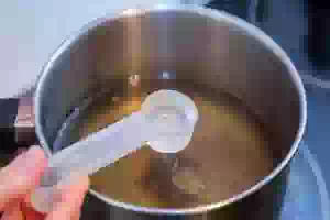 2. Для маринада смешать в небольшой кастрюле воду, соль, сахар и специи. Довести до кипения, проварить на слабом огне 5 минут и влить уксус.