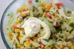 Салат из пекинской капусты с крабовыми палочками и кукурузой