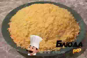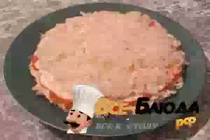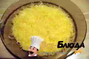5. Сверху мелко натереть сыр и смазать майонезом.